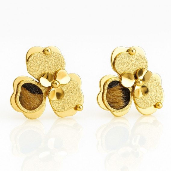 Kolczyki ze stali szlachetnej pozłacane 14k złotem, kwiaty z panterką KST3444