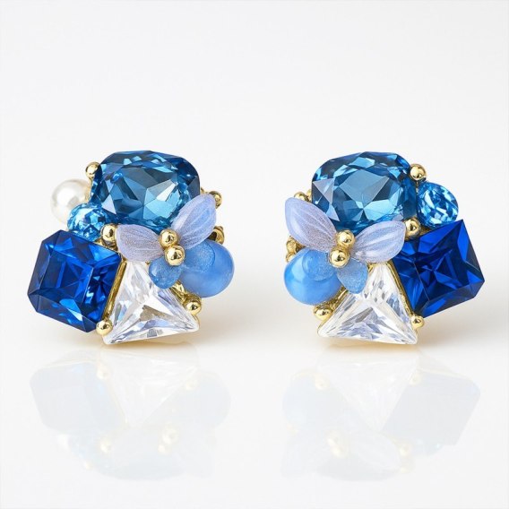 Kolczyki ze stali szlachetnej pozłacane 14k złotem, niebieskie cyrkonie KST3473