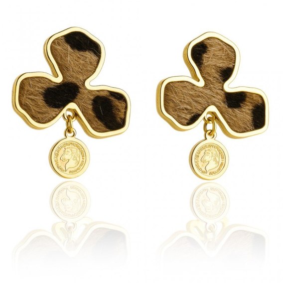 Kolczyki ze stali szlachetnej pozłacane 14k złotem, panterka KST3448