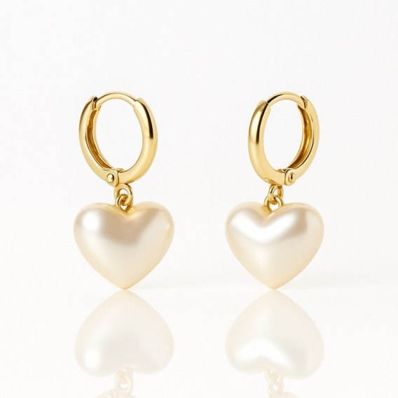 Kolczyki ze stali szlachetnej pozłacane 14k złotem, perły serca KST3475