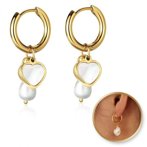 Kolczyki ze stali szlachetnej pozłacanej 14k złotem, SERCE, PERŁA KST3319