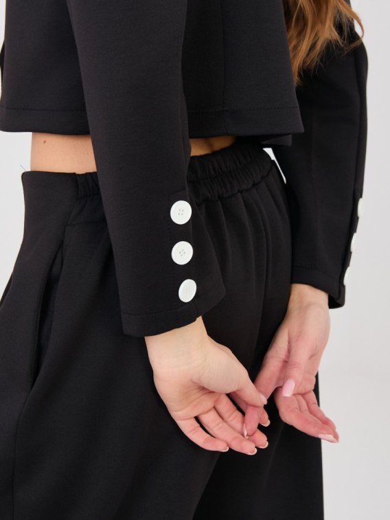 Skład materiału : 50% poliester, 45% wiskoza, 5% elastan