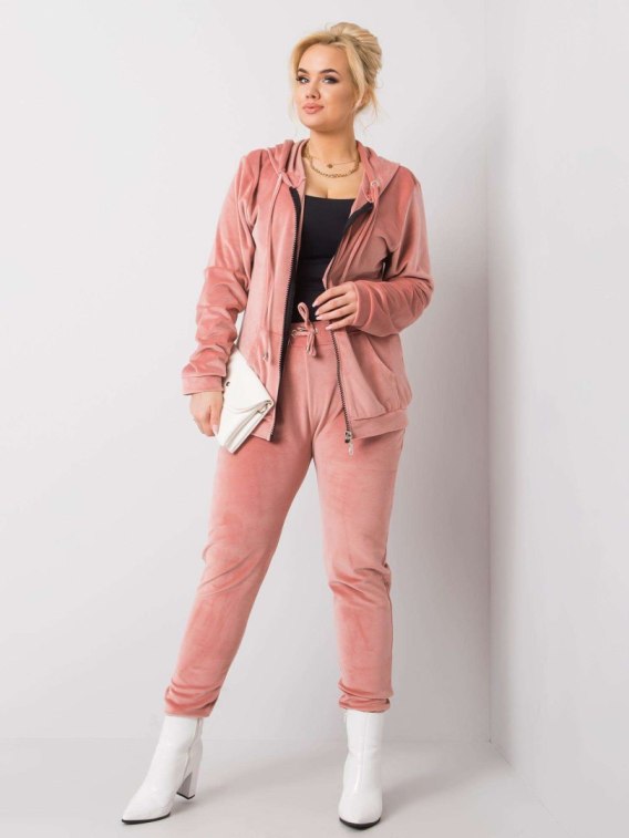 Brudnoróżowy komplet welurowy plus size.