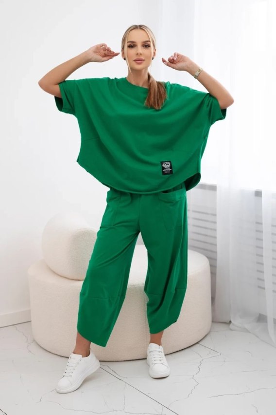 Włoski komplet to połączenie elegancji i wygody, które idealnie pasuje do wielu okazji. Ta tkanina jest nie tylko miękka i przyjemna w dotyku, ale także pięknie się prezentuje. Bluzka to doskonały element garderoby zarówno na co dzień, jak i na specjalne okazje. Możesz nosić ją solo lub zestawić z inną częścią garderoby, tworząc niezwykle stylowy outfit. Spodnie to doskonałe uzupełnienie kompletu. Ich luźny krój pozwala na swobodę ruchów, co sprawia, że są one nie tylko stylowe, ale także bardzo wygodne. Wybierając spodnie, wybierasz komfort i elegancję w jednym. Włoski komplet to doskonały wybór dla tych, którzy cenią sobie wysoką jakość i wyjątkowy styl. Bez względu na to, czy wybierasz się na spotkanie z przyjaciółmi, do pracy, czy na wieczorne wyjście, ten zestaw z pewnością wyróżni cię z tłumu.  Rozmiar jest uniwersalny i pasuje dla kobiet noszących rozmiar S, M lub L.