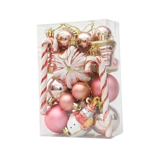 Komplet bombek bożonarodzeniowych 29 szt. – różowe BSN50