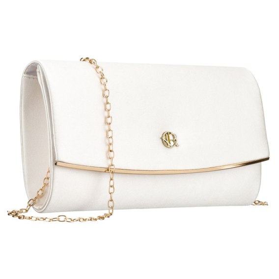 Kopertówka damska wykonana z tkaniny syntetycznej w białym kolorze, zawieszona na łańcuszku - Rovicky