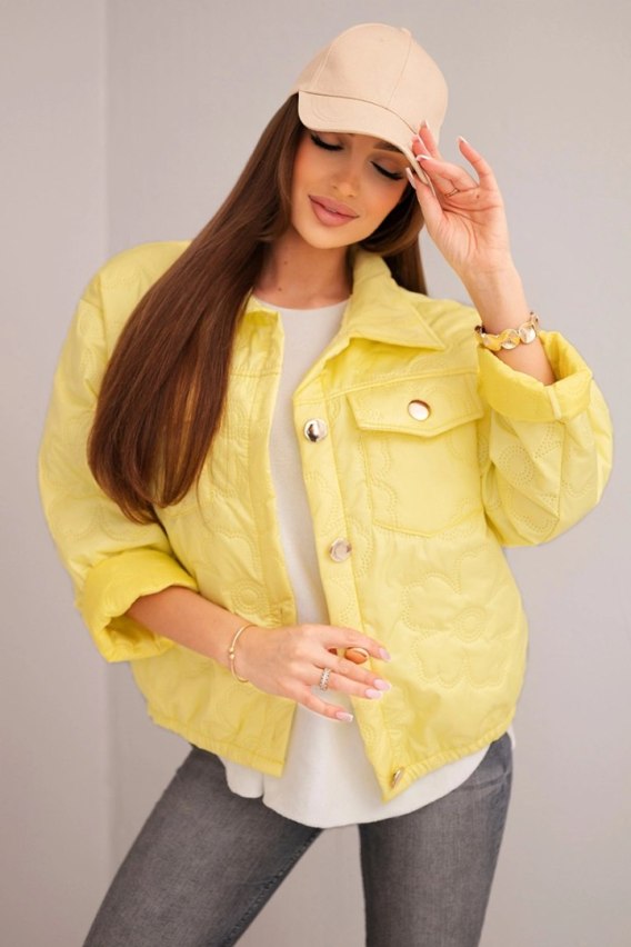 Kurtka damska wiosenna pikowana z kwiatowym wzorem żółta