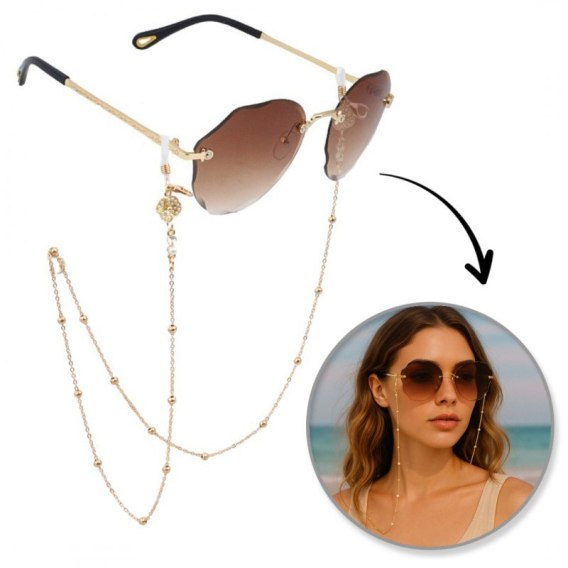 Łańcuszek do okularów cienki złoty kwiat cyrkonie 68cm LDK17