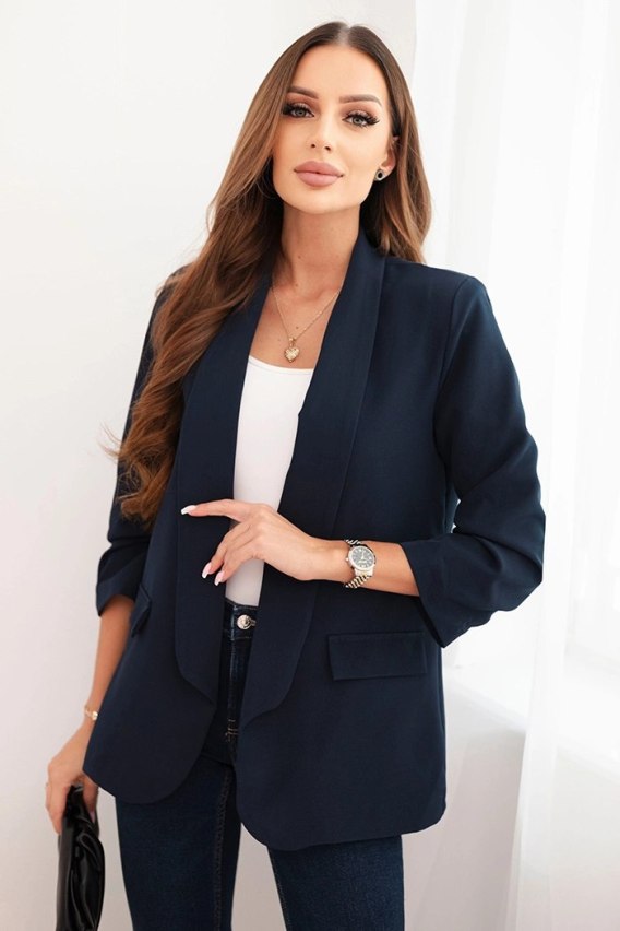 Marynarka damska bez zapięcia z podszewką S/M granatowa – klasyka, która nigdy nie wychodzi z mody