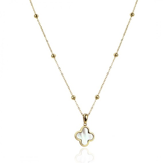 Naszyjnik koniczynka z masą perłową – stal chirurgiczna pozłacana 14K | NST2187
