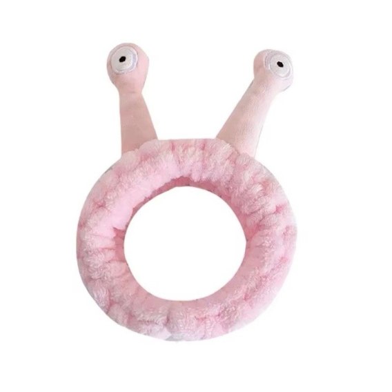 Urocza różowa opaska kosmetyczna Ślimak OPK22R z miękkiego pluszu. Idealna do makijażu, pielęgnacji i domowego SPA. Elastyczna, wygodna i stylowa.