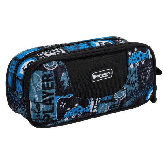 Piórnik szkolny dwukomorowy z motywem gamingowym – Peterson