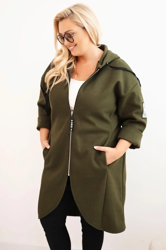 Płaszcz damski Plus Size z zamszu rozpinany z kapturem khaki