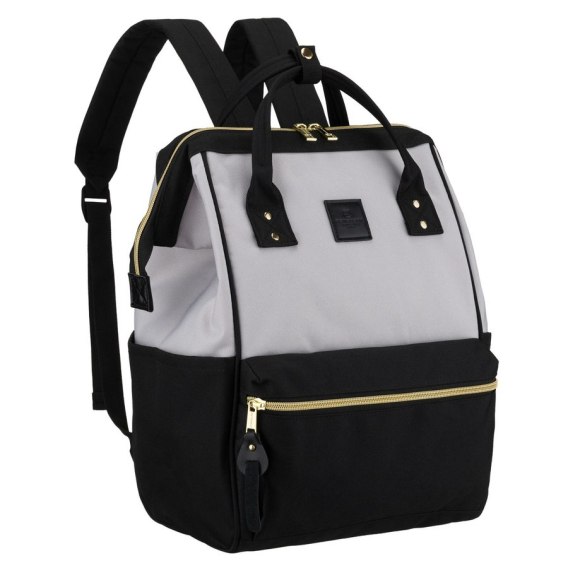 Plecak damski z poliestru w szaro-czarnym kolorze, idealny na bagaż podręczny - Peterson