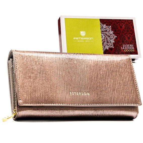 Portfel damski ze skóry naturalnej w brązowym kolorze, wyposażony w system RFID - Peterson