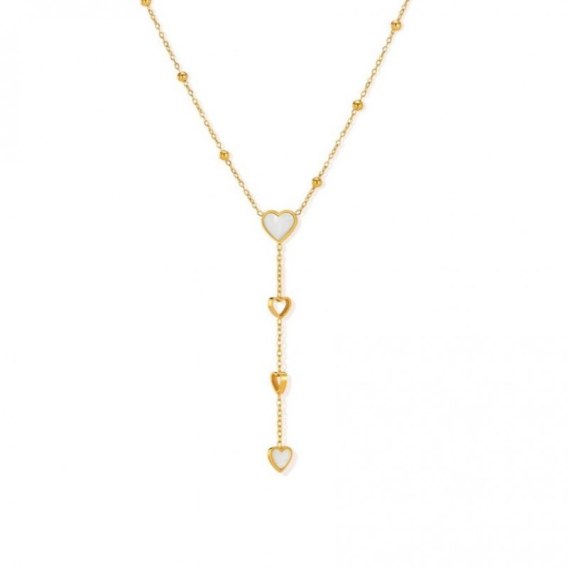 Pozłacany naszyjnik ze stali szlachetnej z sercami i masą perłową – NST2151