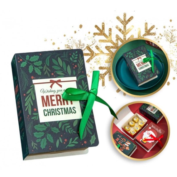 Pudełko PREZENTOWE ozdobne zielone, MERRY CHRISTMAS z kokardą 13x9x4,5 cm OPO33