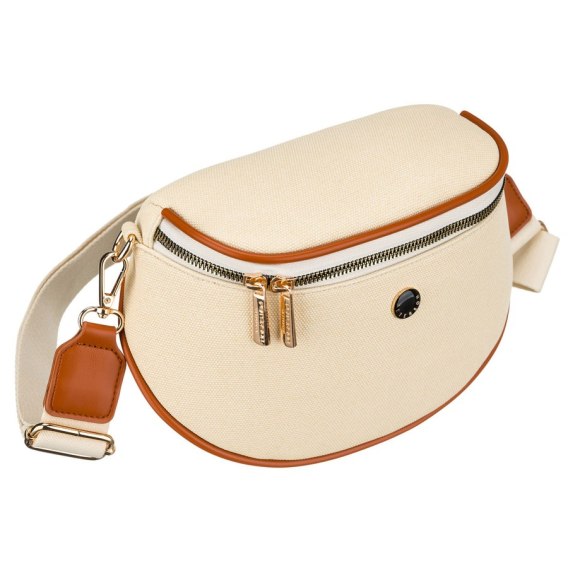 Saszetka damska w kolorze ecru z brązowymi elementami, zamykana suwakiem - Peterson