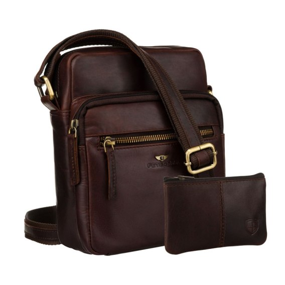 Skórzana, brązowa torebka męska zawieszona na pasku. W zestawie saszetka na klucze - Peterson