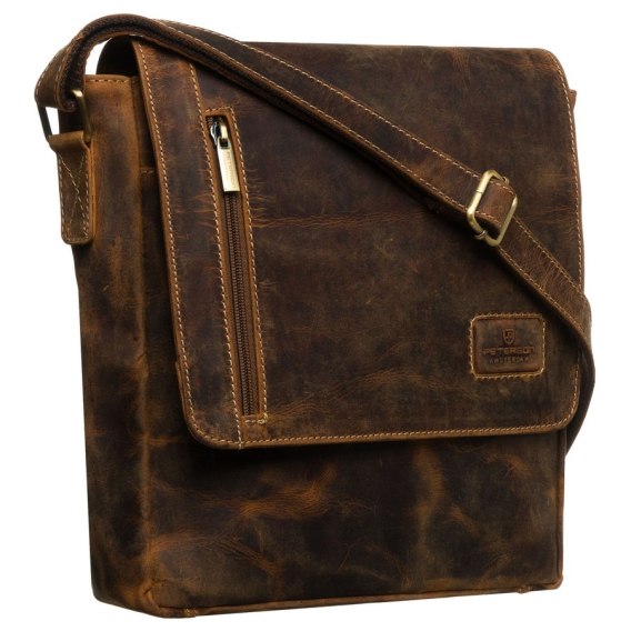 Skórzana listonoszka męska w brązowym kolorze zawieszona na regulowanym pasku - Peterson