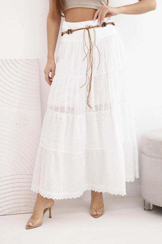 Spódnica damska maxi bawełniana z ażurowym haftem i elastycznym pasem biała