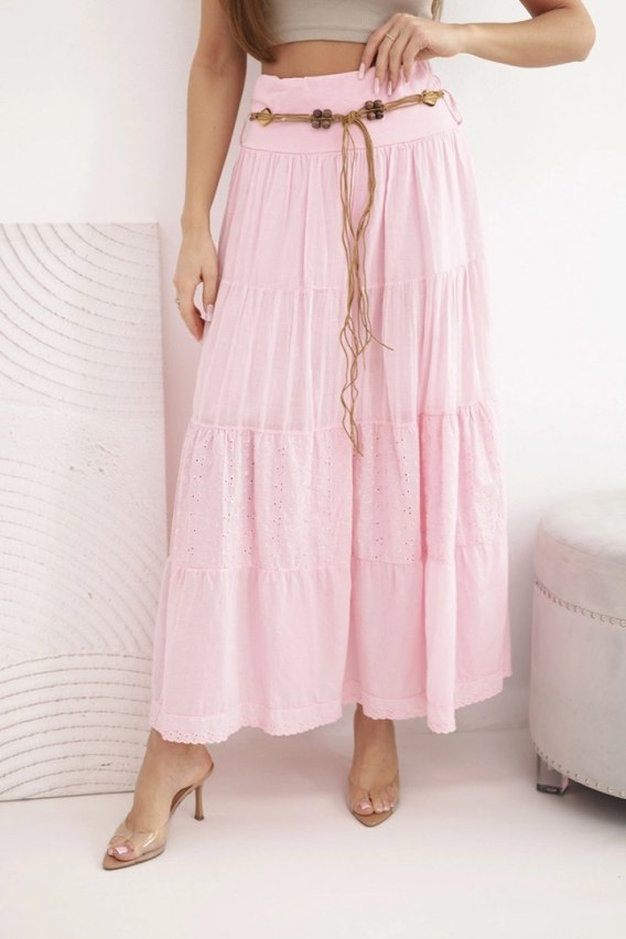 Spódnica damska maxi bawełniana z ażurowym haftem i elastycznym pasem cukierkowy róż