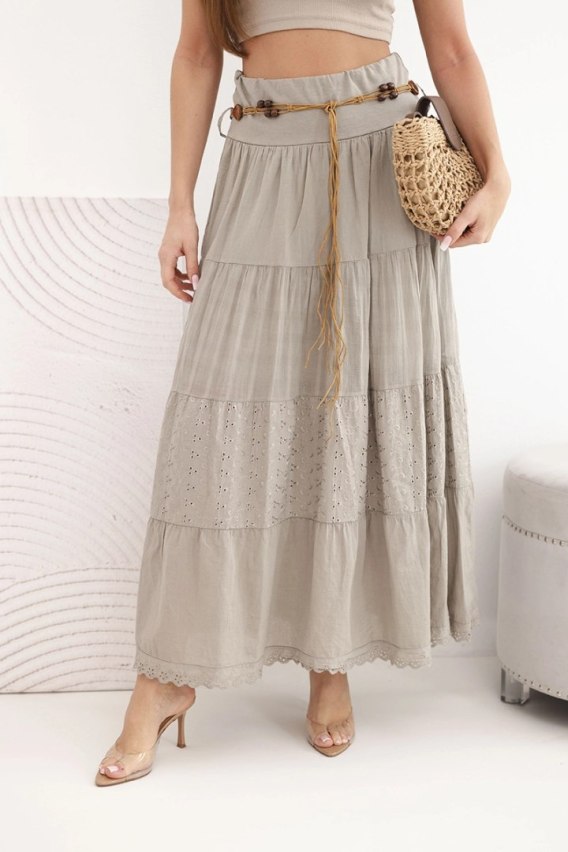 Spódnica damska maxi bawełniana z ażurowym haftem i elastycznym pasem fango