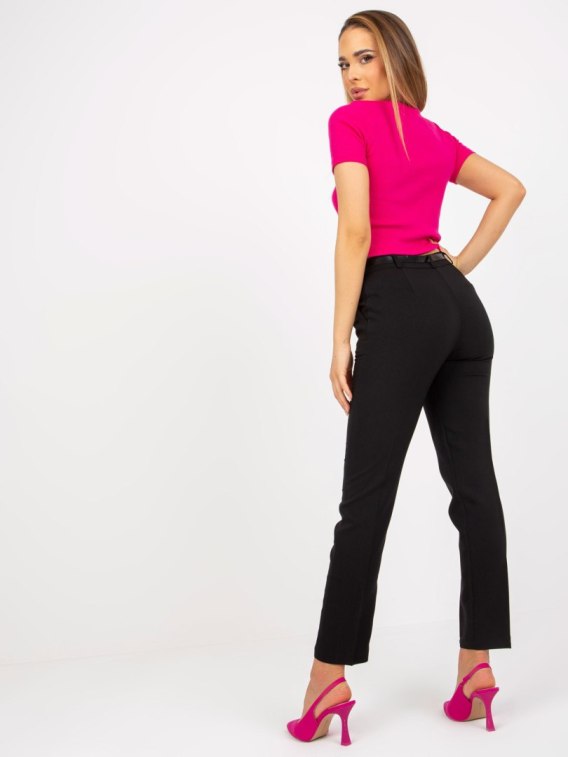 Czarne proste spodnie z materiału z paskiem .