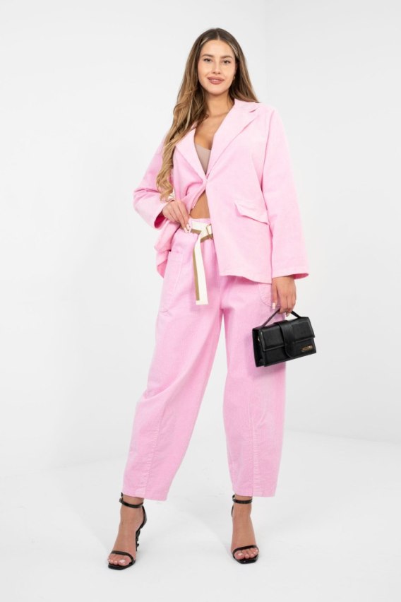 Jeśli szukasz spodni, które będą modne, wygodne i kobiece, pastelowe różowe spodnie sztruksowe RUE PARIS będą idealnym wyborem.