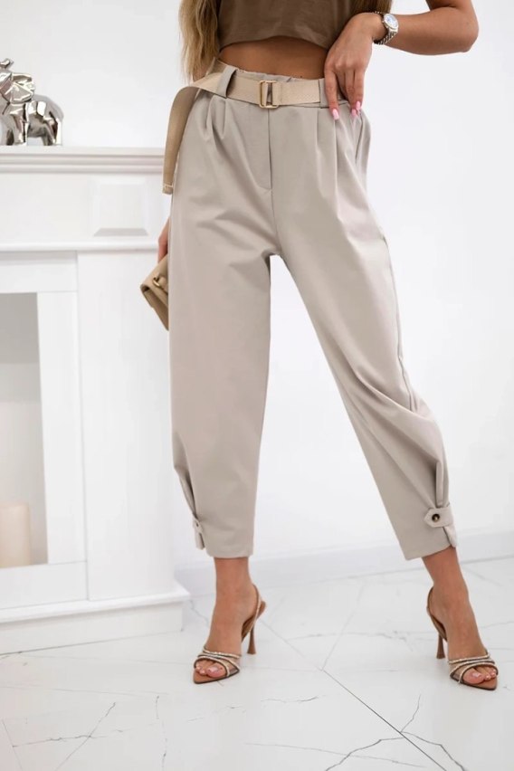 Spodnie Summer Punto z zapięciem na nogawkach ciemno beżowe