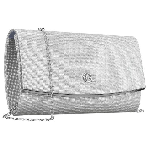 Srebrna, elegancka torebka damska wykonana z tkaniny syntetycznej zamykana klipsem magnetycznym - Rovicky