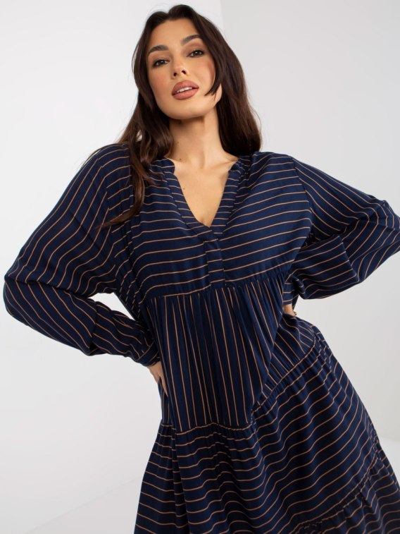 Granatowa luźna sukienka w paski z wiskozy SUBLEVEL .