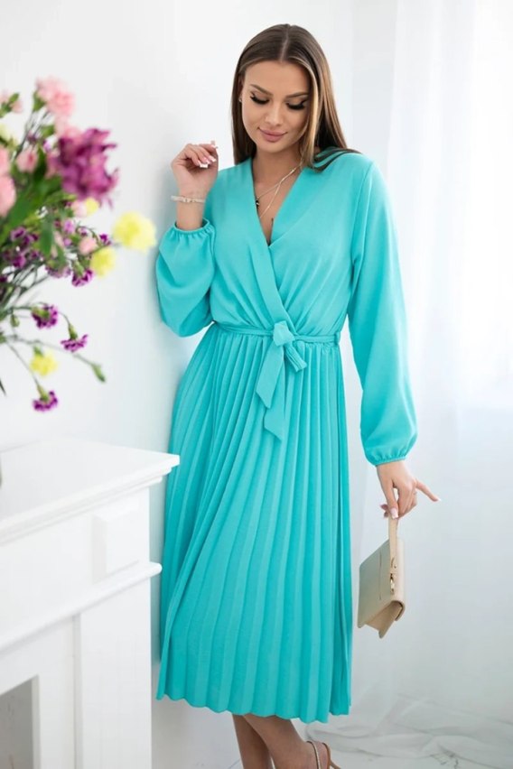 Sukienka wiązana z plisowanym dołem miętowa