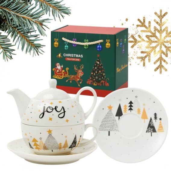 Świąteczny zestaw – dzbanek z filiżanką i talerzykiem w ozdobnym pudełku (KB28)