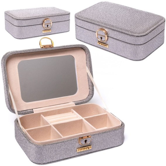 - Zintegrowane lusterko w pokrywie - ułatwia szybkie poprawki makijażu czy biżuterii w podróży.