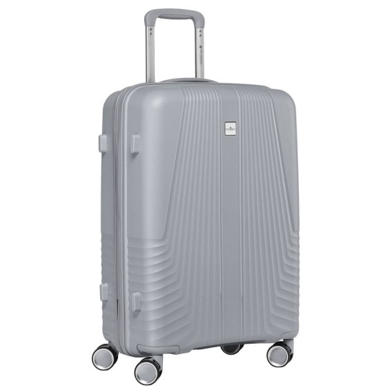 Szara walizka podróżna w średnim rozmiarze z teleskopowym uchwytem i kółkami obrotowymi - Peterson