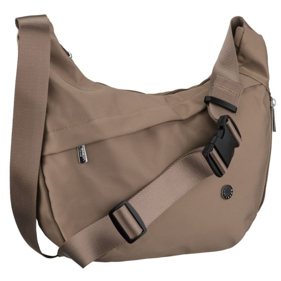 Torebka damska w ciemnobeżowym kolorze wyposażona w kieszeń zewnętrzną - Peterson