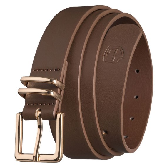 Wąski pasek damski ze skóry ekologicznej w kolorze khaki ze złotą klamrą - Peterson