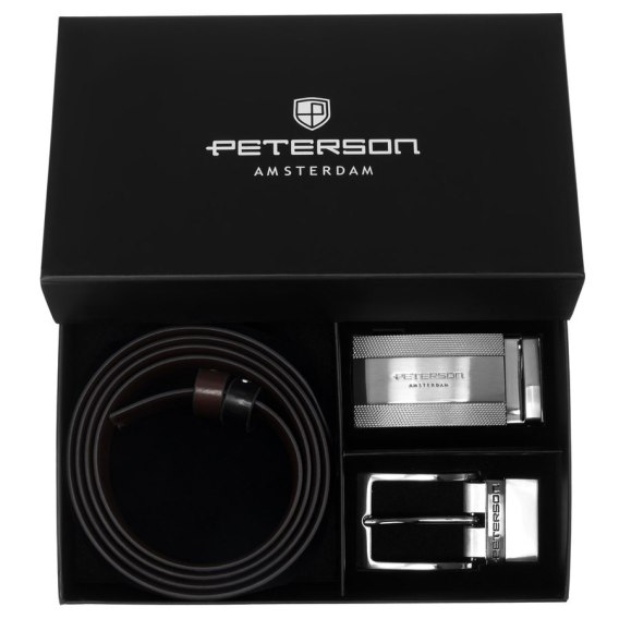 Zestaw prezentowy: dwustronny pasek skórzany w brązowym i czarnym kolorze - Peterson