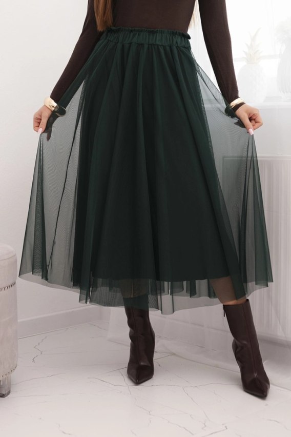 Lekka i elegancka zielona spódnica tiulowa midi z miękką wiskozową podszewką. Elastyczny pas i uniwersalny fason zapewniają wygodę i styl na co dzień oraz na specjalne okazje.