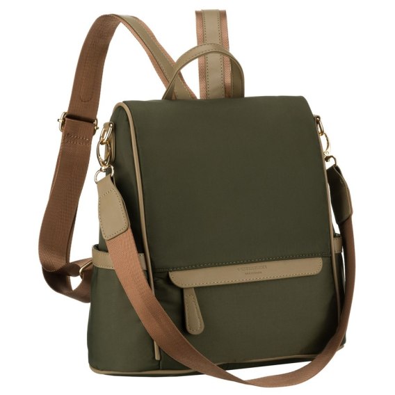 Zielony, miejski plecak damski z nylonu i skóry ekologicznej z doczepianym paskiem - Peterson